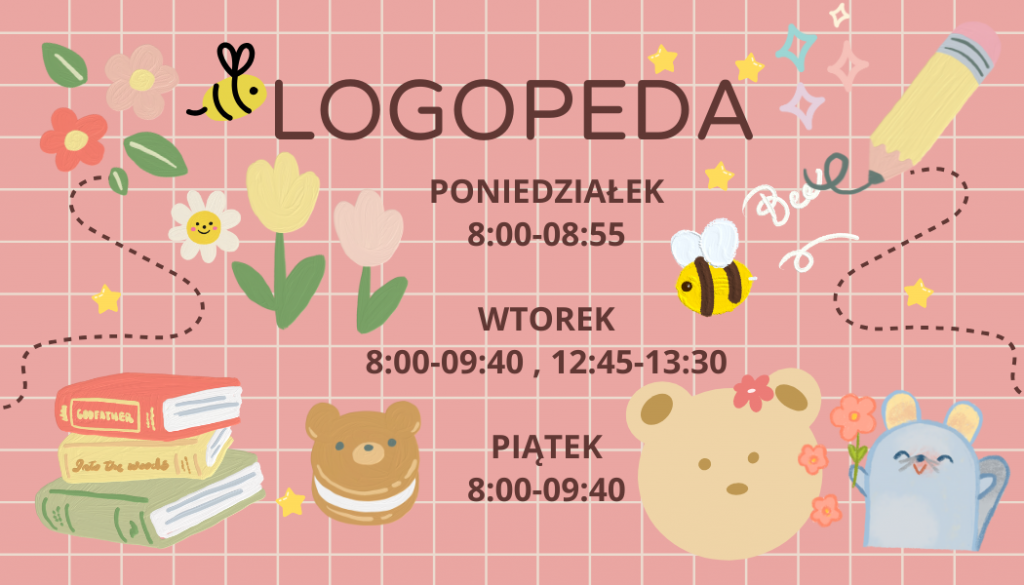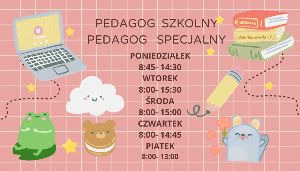 GODZINY PRACY PEDAGOGA, PSYCHOLOGA oraz LOGOPEDY SZKOLNEGO