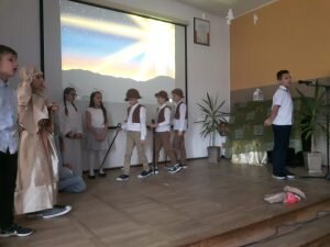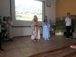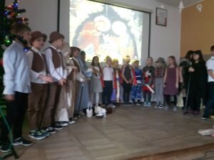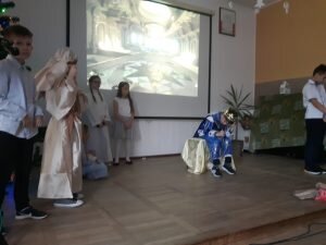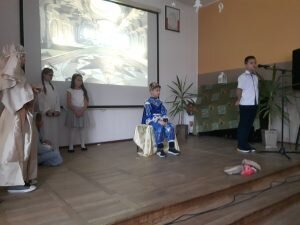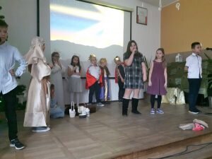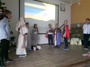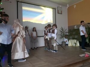 20 grudnia w naszej szkole odbyły się „Jasełka” przygotowane przez klasę II, pod czujnym okiem wychowawczyni p. Izabeli Cichockiej – Marciniak. Uczniowie, przedstawiając historię narodzenia Pana Jezusa, wprowadzili wszystkich w świąteczny nastrój, a drugoklasiści swym pięknym występem podbili serca publiczności. Niejednej osobie zakręciła się łza w oku… Piękny śpiew pastorałek i piosenek świątecznych uświadomił wszystkim i przypomniał o tym, że Święta Bożego Narodzenia są już bardzo blisko. Kiedy część artystyczna dobiegła końca, występujący aktorzy otrzymali gromkie brawa. Występ był niezwykłym przeżyciem zarówno dla aktorów, nauczycieli i zaproszonych gości – rodziców.